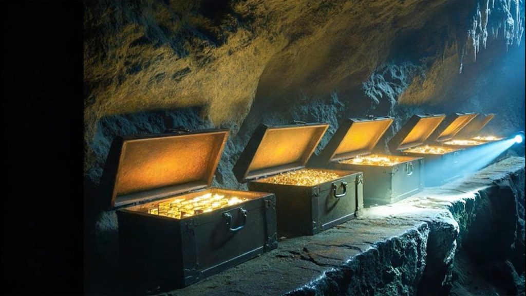 四个人慢慢走近,用手电筒照向箱子,瞬间更更吃惊了。几个打开箱盖的箱子里面,竟然全是金砖金锭!